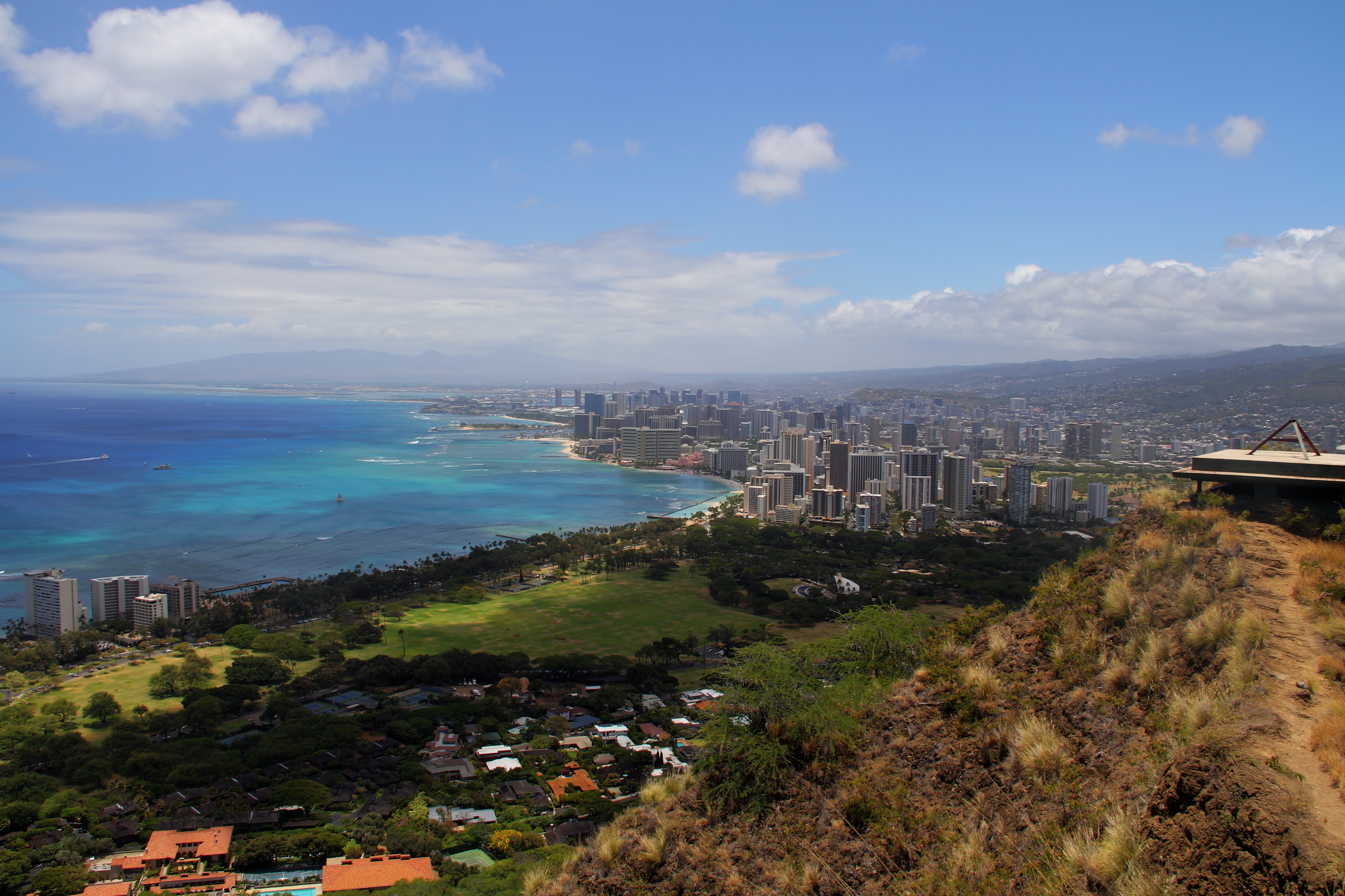 2. Hit Diamond Head. Another short (but steep) climb. Much of the “trail” is really concrete stairs leading to the lookout. But the views of downtown Honolulu are hard to beat.