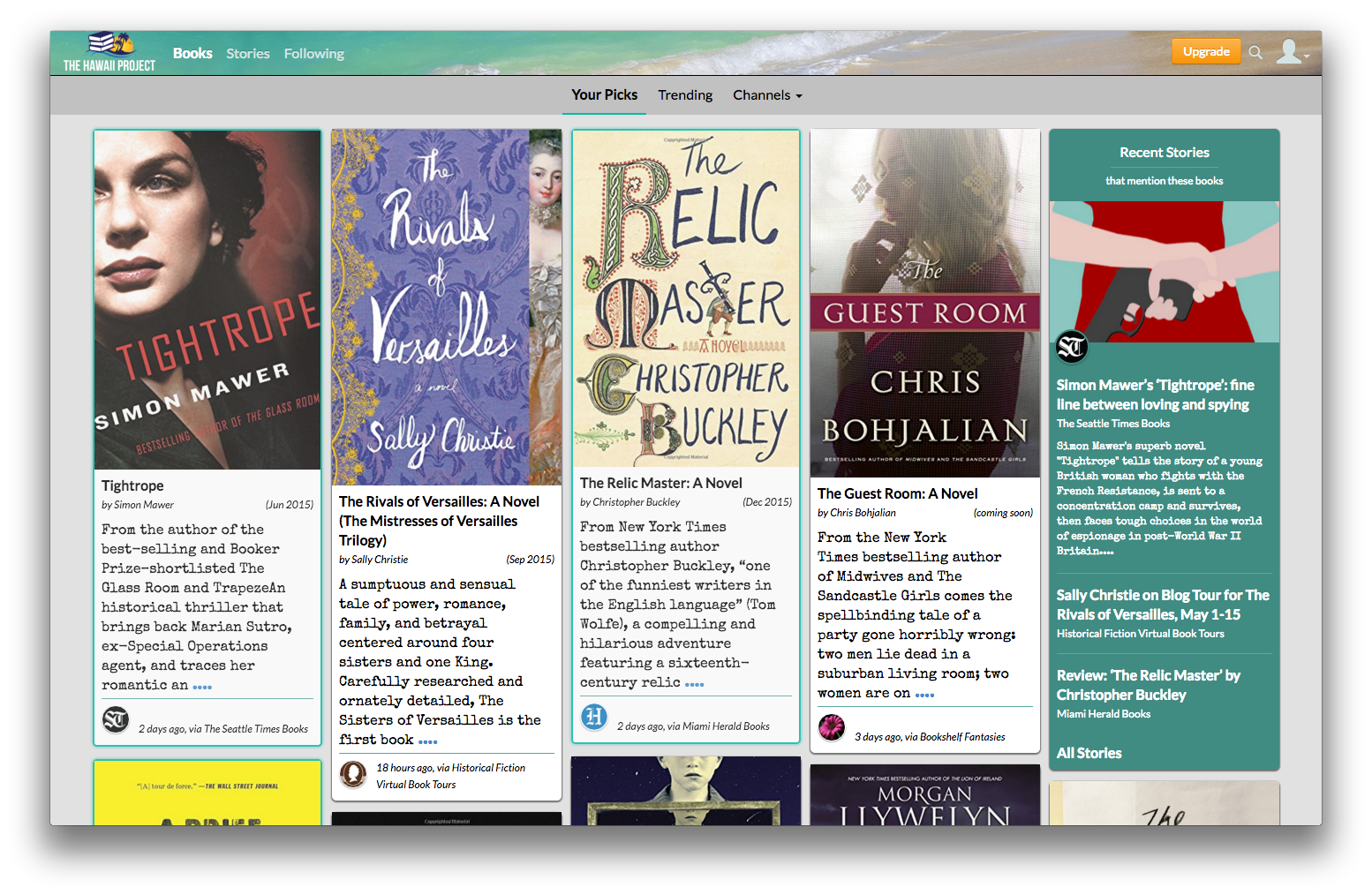 The Hawaii Project works by scanning almost a thousand high quality web sources of writing about books. Everything from The New York Times book reviews to author blogs to niche blogs about special topics, like espionage books, politics or medieval history. It was clear people weren’t getting that, nor were they really aware there were “stories” at all in the system. That is a key differentiator, so it needed to become more obvious.